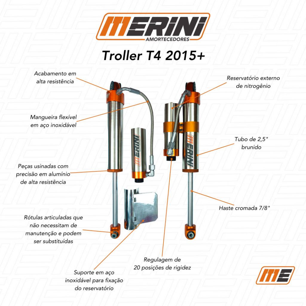 Os amortecedores para Troller, são equipados com reservatório externo e ajuste de compressão, podendo personalizar sua suspensão para uma experiência mais macia ou mais rígida, conforme o terreno que você for desbravar ou a carga que você for transportar.